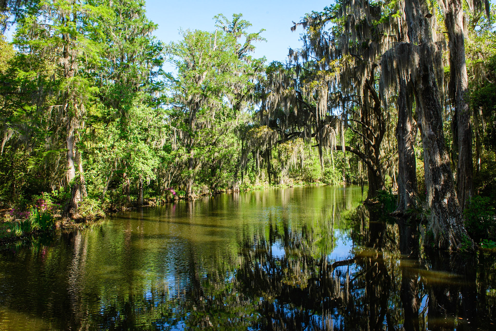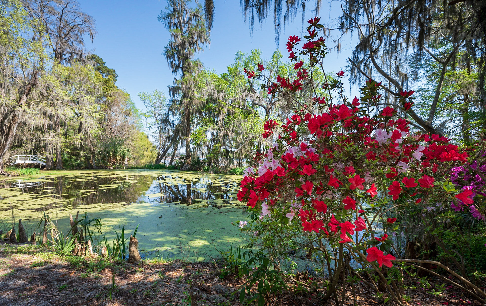 Live oak, azaleas, and spanish moss